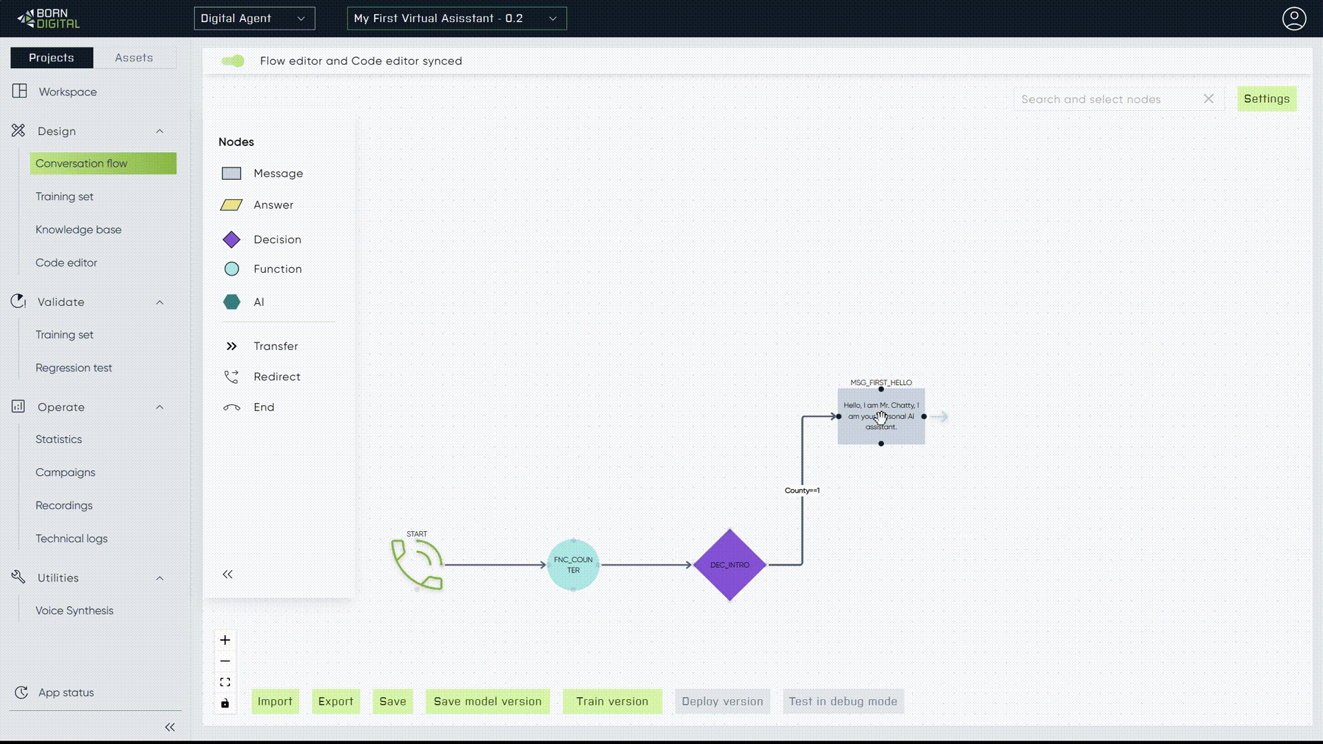 Now, let's proceed to customize our message nodes by leveraging the properties extracted using "Namex":