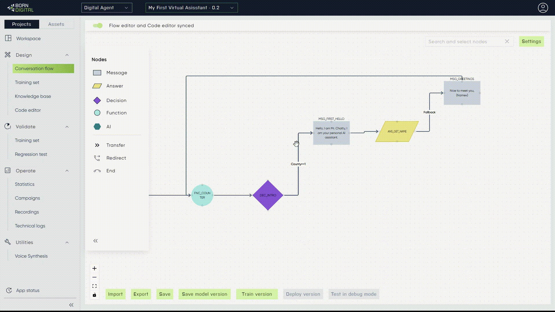 The second step was about configurating friendly greetings in our Digital Studio Conversation Flow