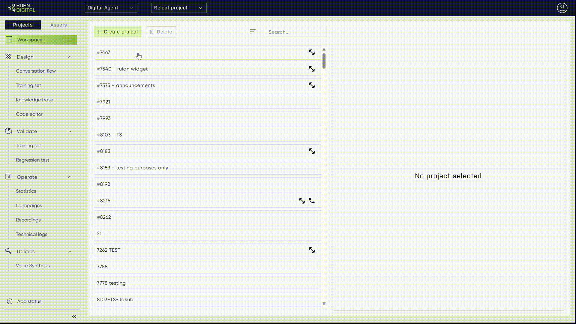 We provide an in-depth understanding of each node at a configuration level along with practical recommendations. This chapter serves as a high-level introduction to the primary functions of these nodes, showcasing various usage scenarios. For practical application and a hands-on experience, visit the [Creating Your First P](https://docs.borndigital.ai/digital-agent/building-new-projects)[roject](https://docs.borndigital.ai/digital-agent/building-new-projects) page.