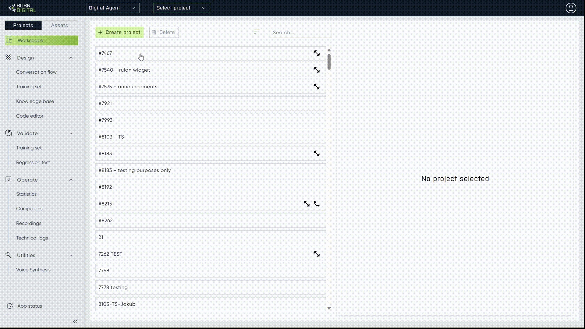 On the Workspace tab, create a new project and navigate to the Conversation flow tab to continue.