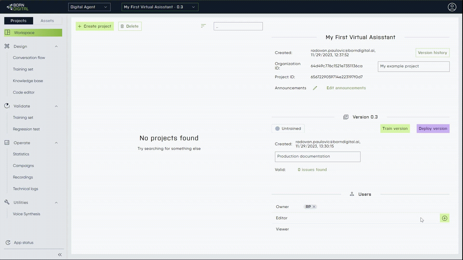 Editor: Have the capability to make any modifications within the project, they can train and deploy projects. However, Editors cannot assign the Owner role. They are often specialised individuals assisting in creating or delivering the project.