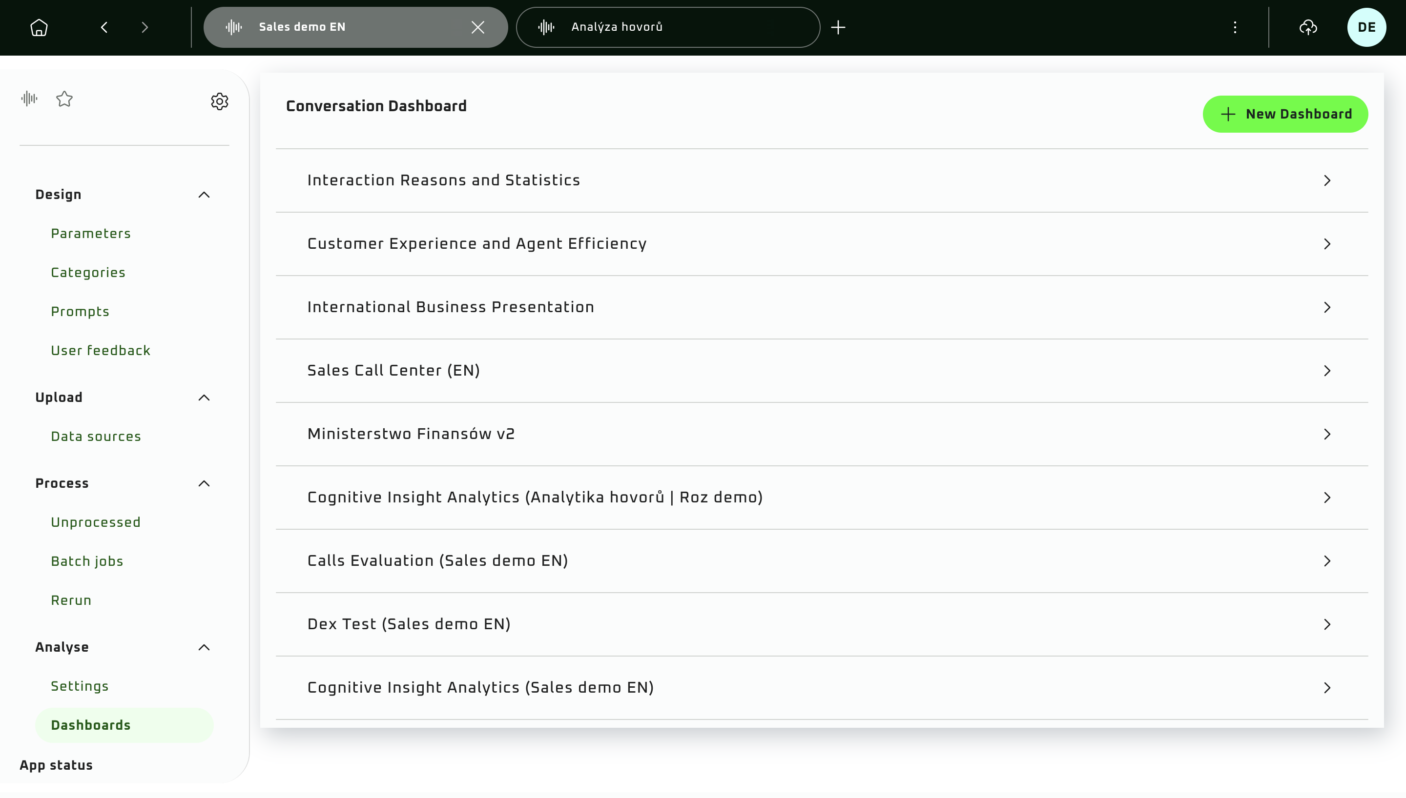 * **Conversation Dashboard**: list displays dashboards that can be accessed&#x20;
