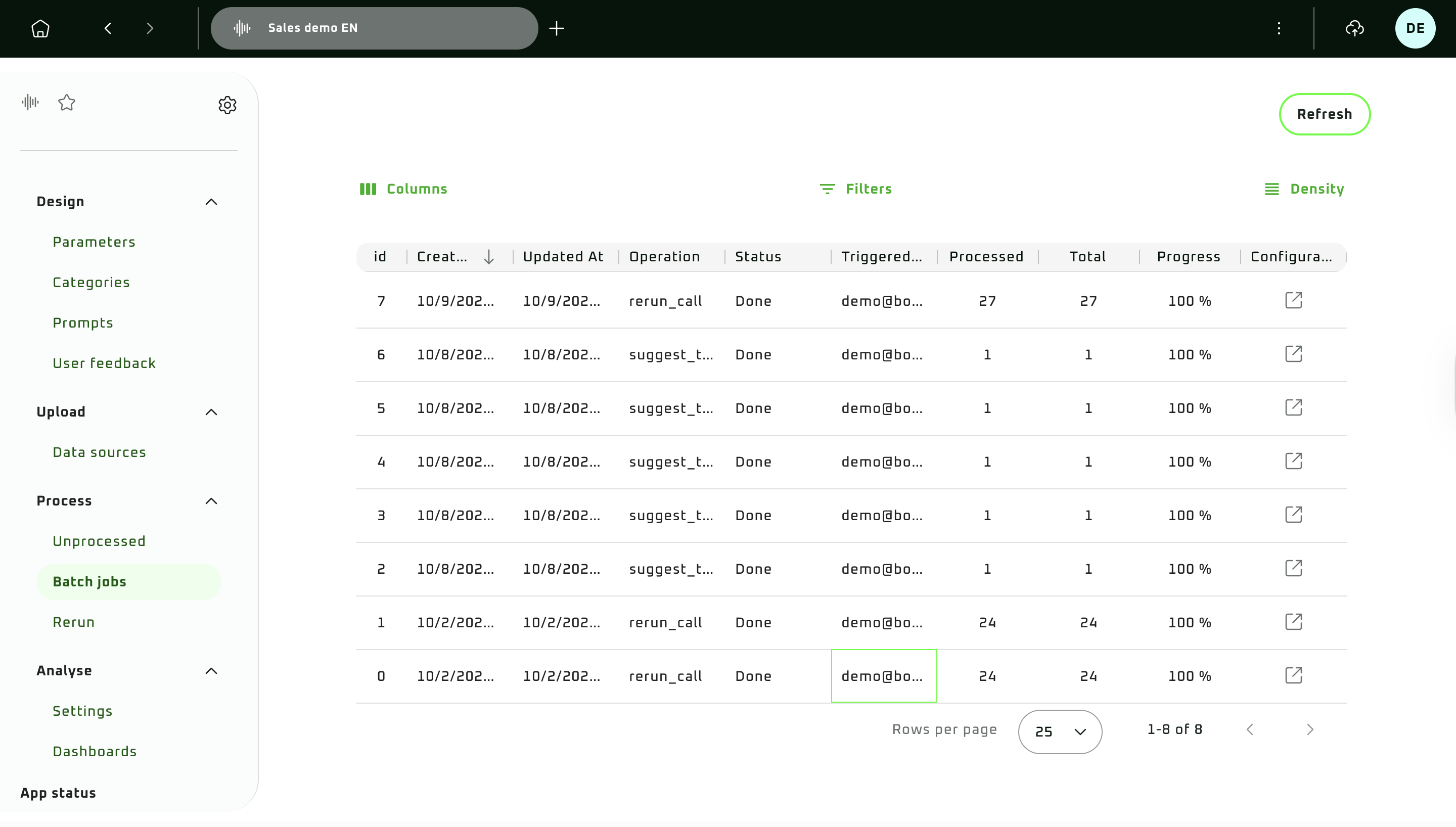 * **Operation**: column displaying the name of the batch job operation, like "rerun\_call"